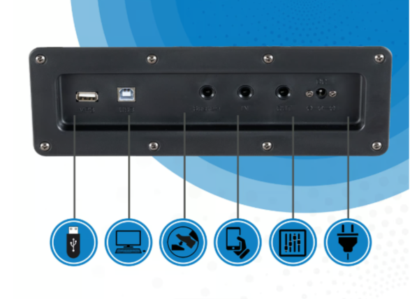 • Connessioni: alimentatore, 2x cuffie, AUX IN/OUT, USB to device, pedale